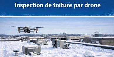 Inspection visuelle de toiture par drone, permettant d’observer l’état général de la toiture et les accumulations de neige sans accès direct à la surface.